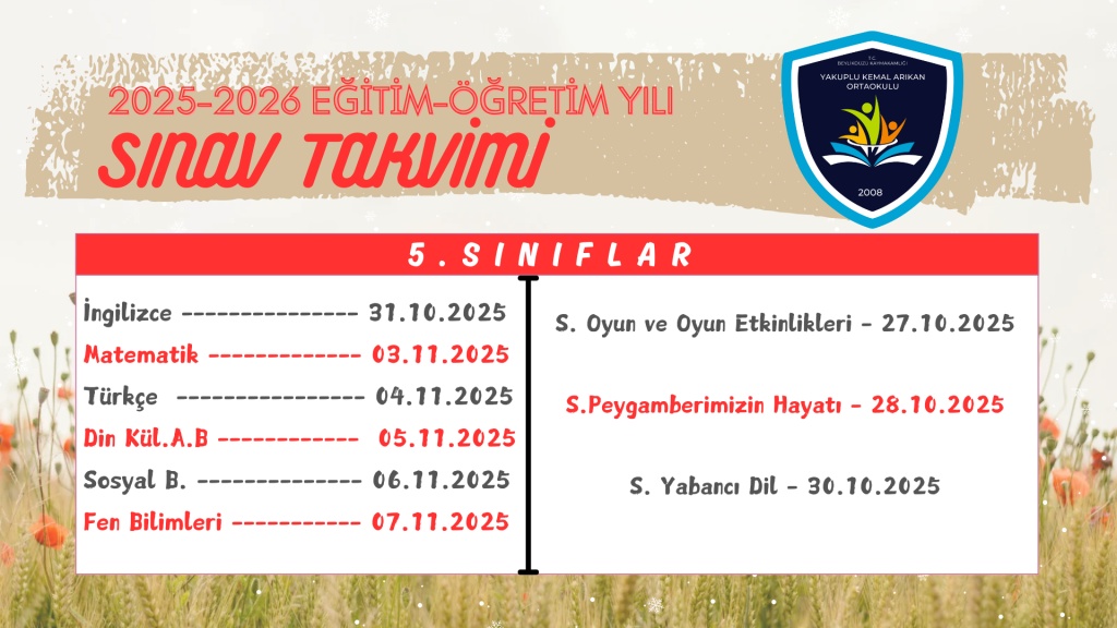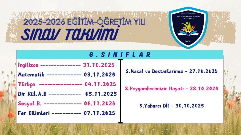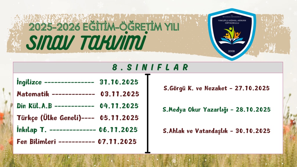 7 ve 8. Sınıfların Türkçe sınavları Ülke Geneli ortak sınav olarak uygulanacaktır.